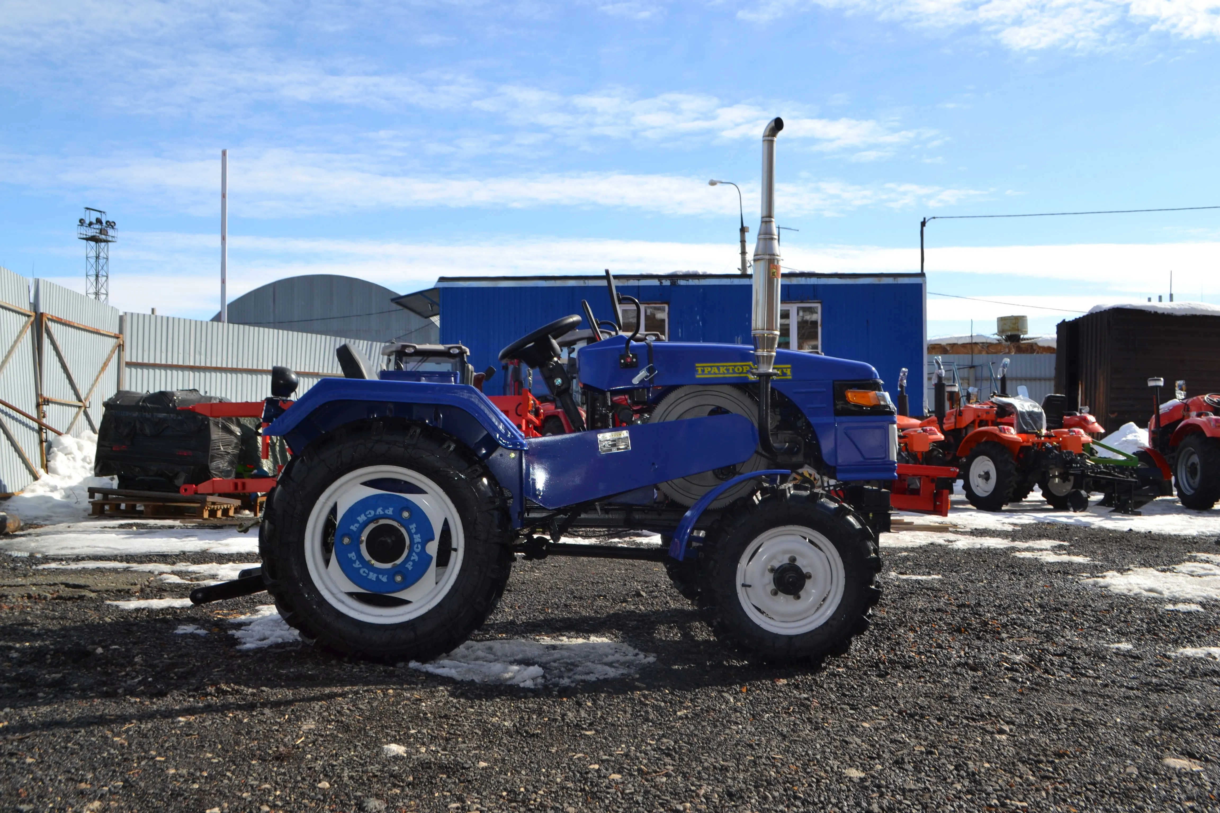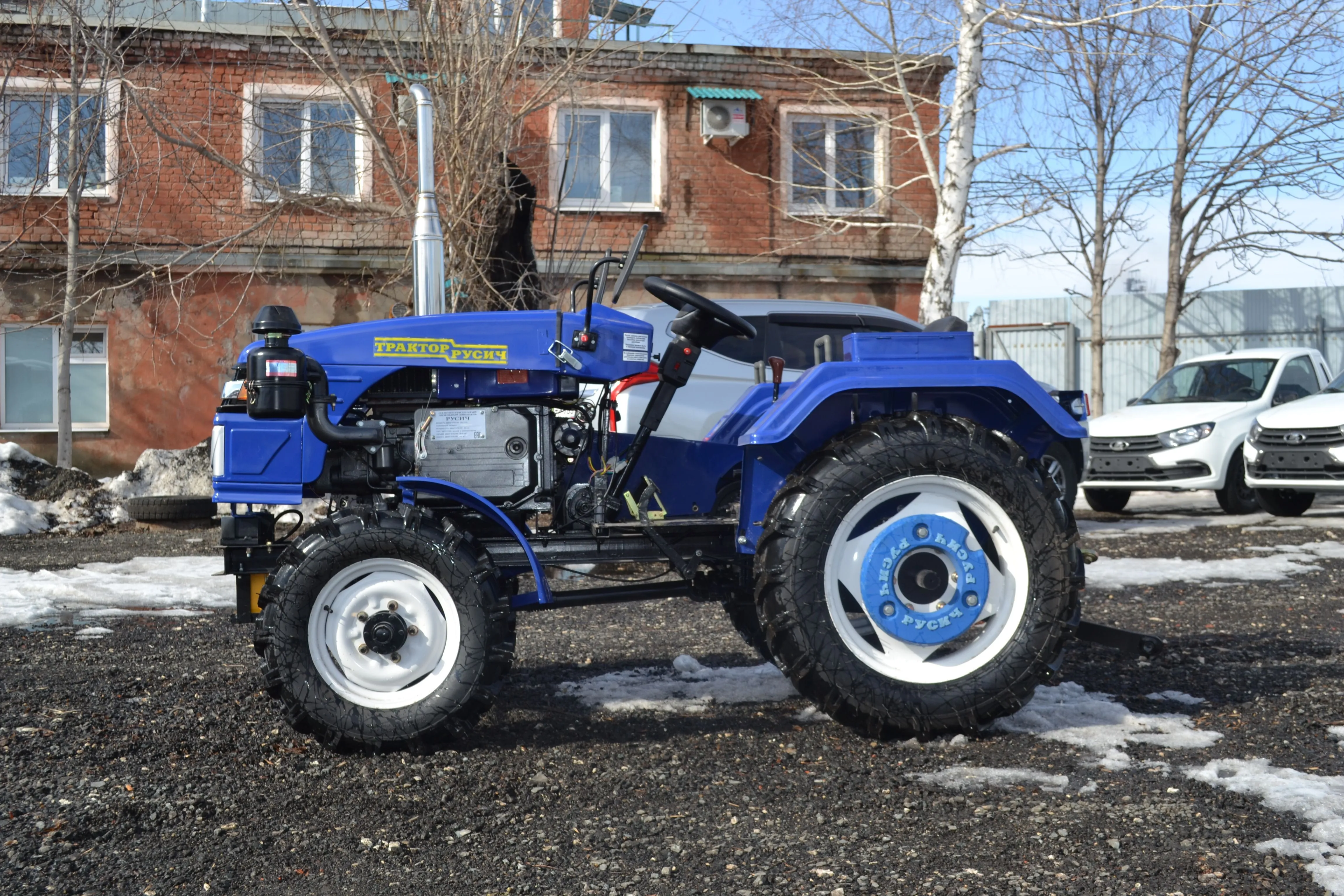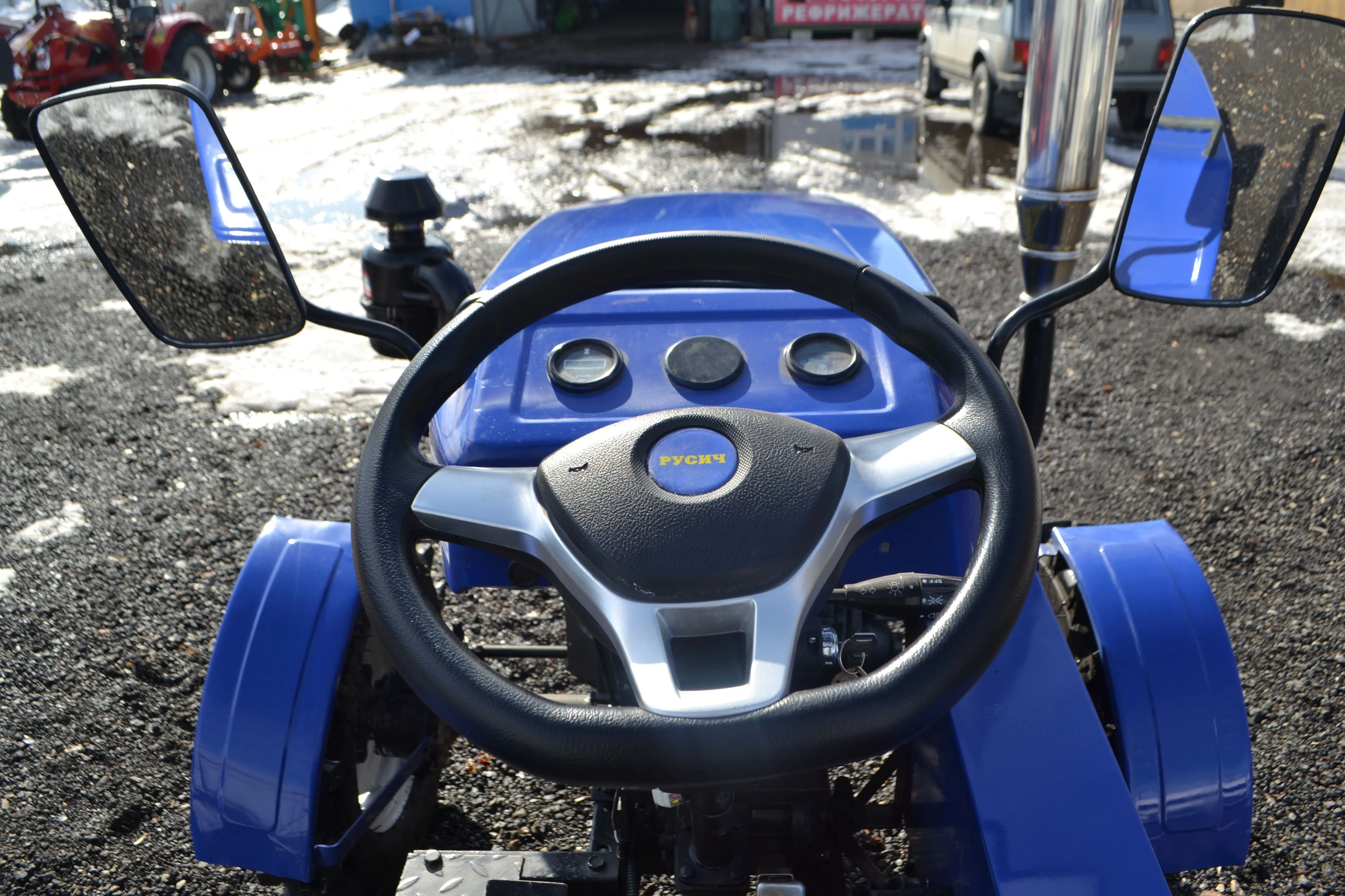 В сегменте до 35 л.с. Русич Т-30 – один из самых сбалансированных вариантов по соотношению цены и возможностей. Это полноценная сельхозмашина с рамной конструкцией, рабочей гидравликой, зеркалами заднего вида для безопасного движения по дорогам.